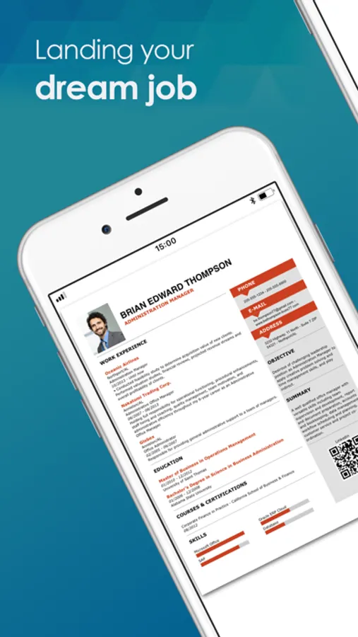 • Print or export resumes via AirDrop and iCloud Drive