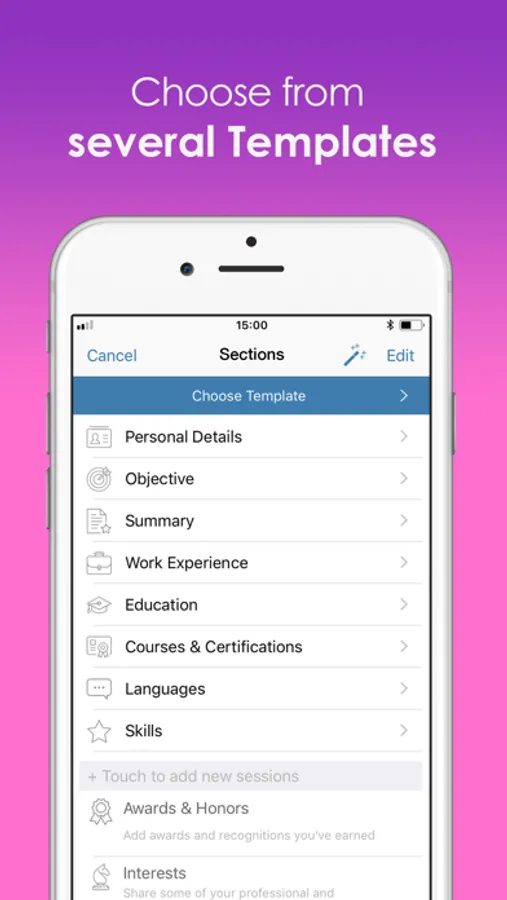 • Add, edit and organize sections of the resume in an easy way.