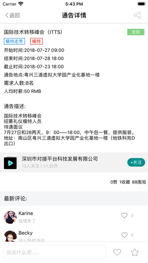 在平台内,模特能以高质量的信息选择优秀的摄影师或活动方,拓展自身的经验;