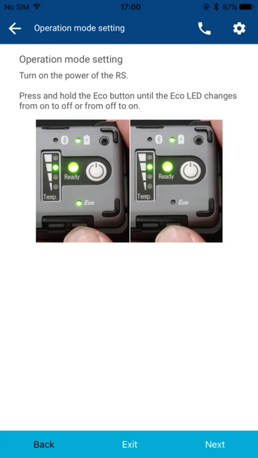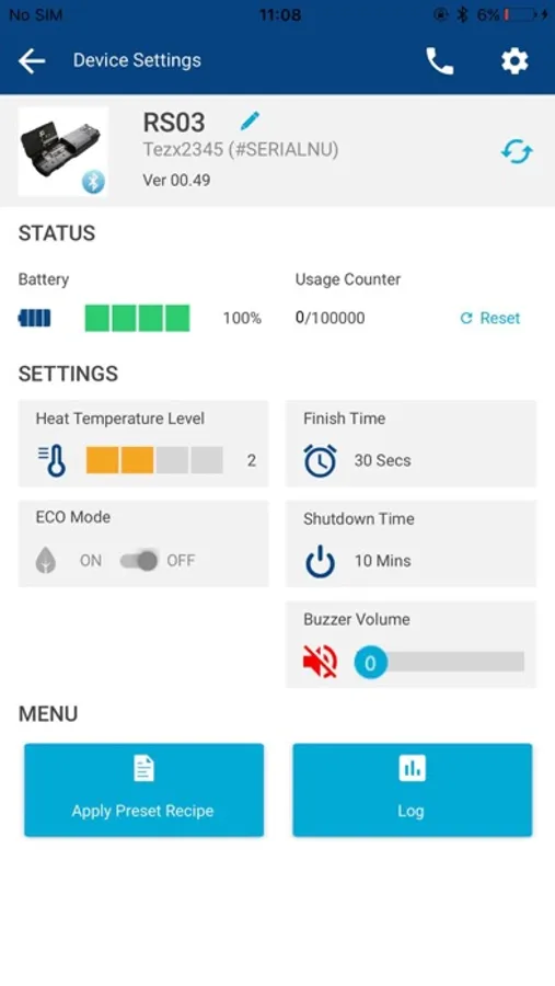 Once the Bluetooth led starts blinking, the device appears on the list and its link icon becomes dark blue. Then you can connect the device to the app by tapping the icon.