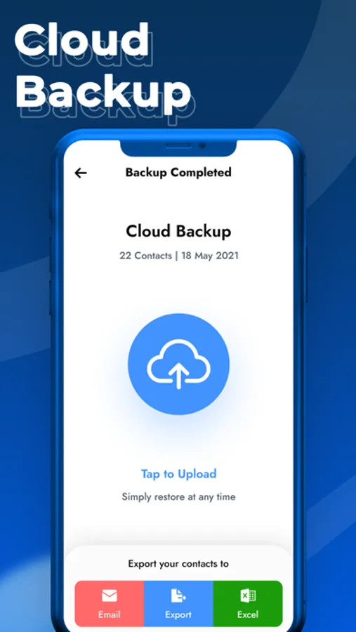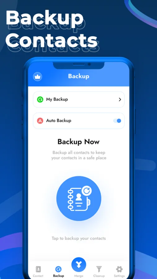 Contact backup allows you to backup your phone's entire contacts list with one tap, by uploading your contacts to a secured cloud to keep them safe!. Now you have access to all your cloud backups of your address book contacts to restore.