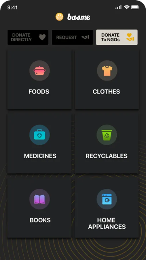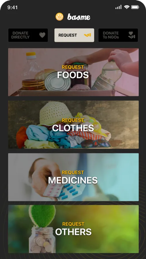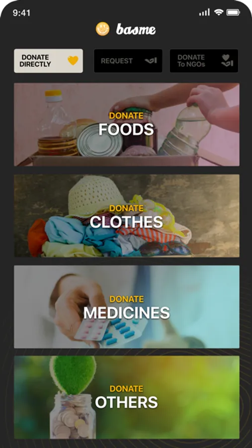 Basme helps users donate or receive donations directly from other users. Basme also helps users find and locate NGOs and charities to donate items to. Simply choose the type of item you want to give away (clothes, recyclables, books, food, toys, or home appliances) and discover nearby people in need or organizations that accept those items.