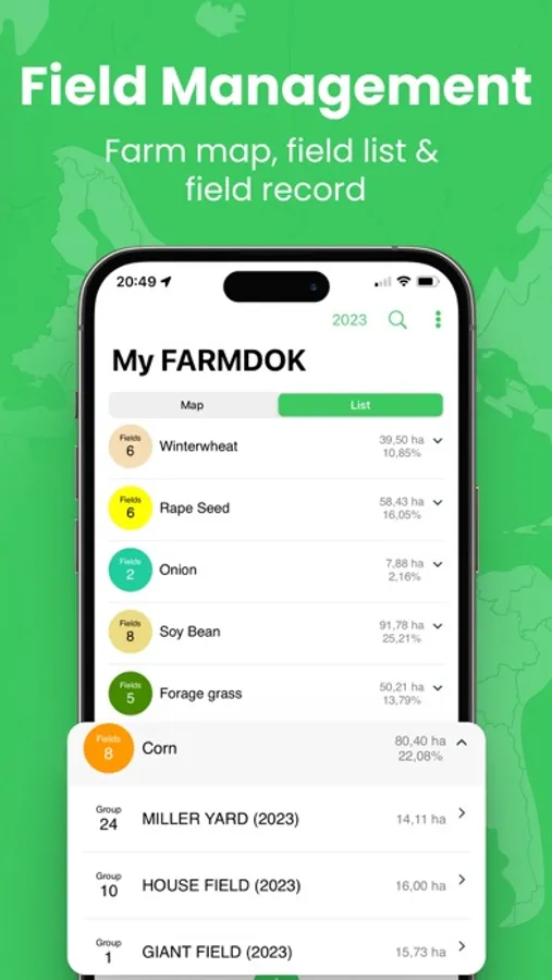 Farmdok automatically detects field work and determines from each field the processed area, work and path times as well as the number of loads applied to each field without driver intervention. Pre-entry of the fields is not necessary. Farmers & contractors benefit from comfort and time savings when creating work records.