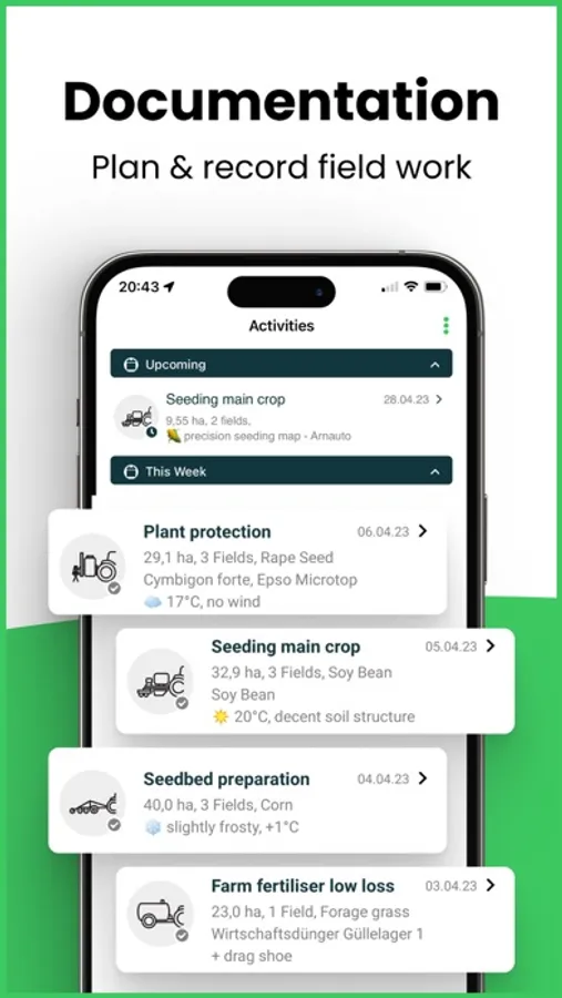 Farmdok is a smart farming system for planning & recording in agriculture. It consists of a smartphone app for action recording and a web client for planning, evaluation and report generation.