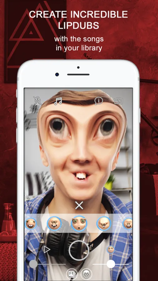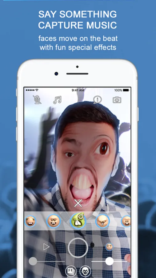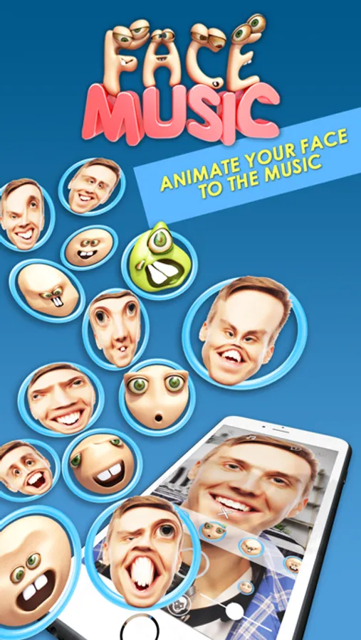 Face Music animates your face to the rhythm of voices and music. A revolution in selfie videos!