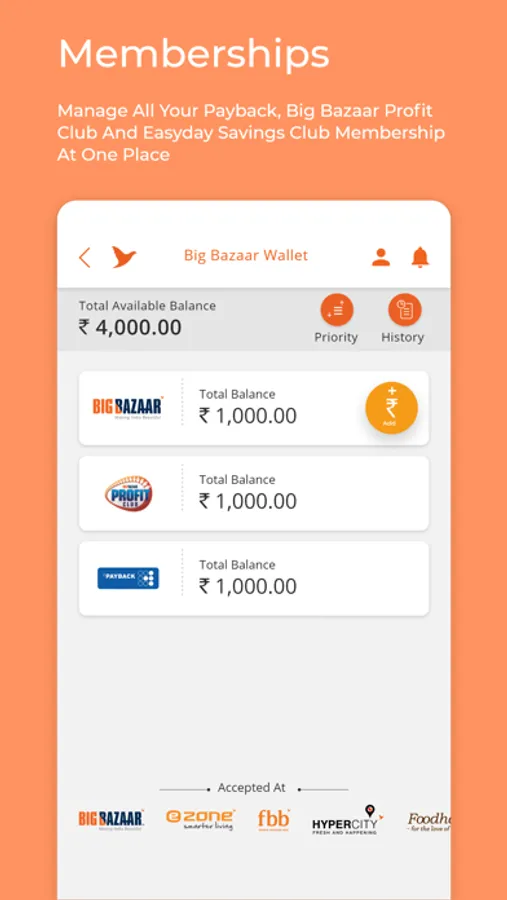 • You can use it across Future Group stores such as Big Bazaar, Central, fbb, Brand Factory, Ezone, Easyday and Heritage Fresh stores