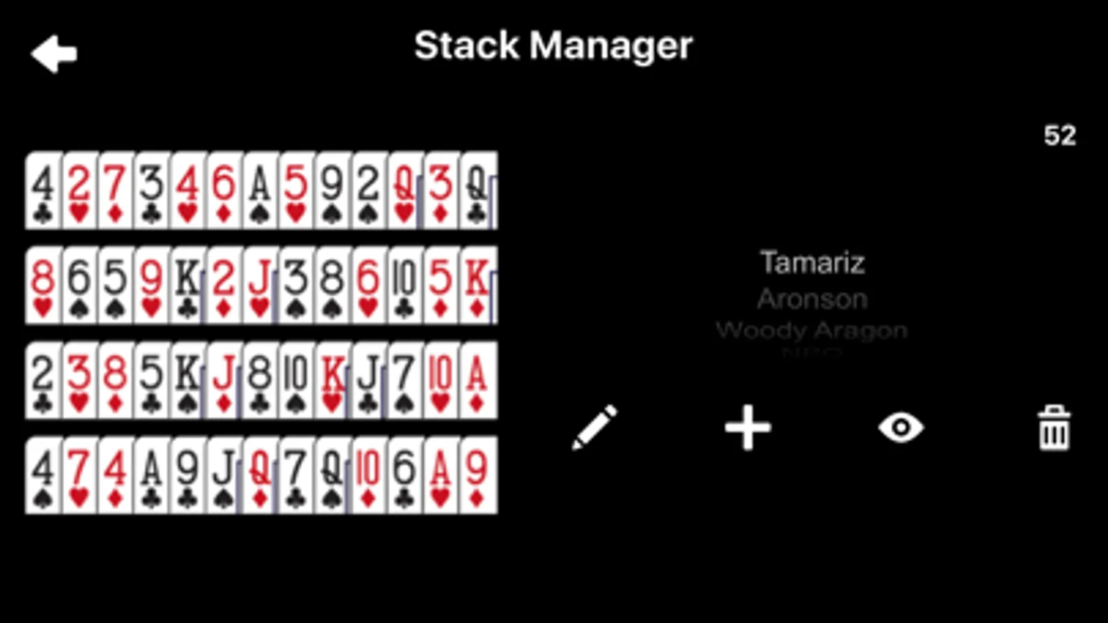 You can define and store any stacks, you use. These can be accessed from all different functions of the app.