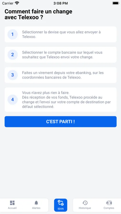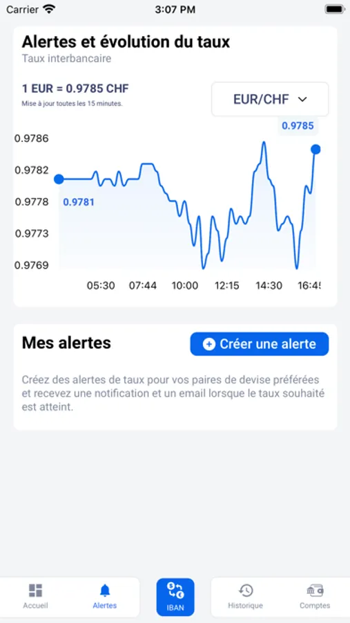 Créez un compte et accédez à votre espace client où vous pourrez suivre les taux de change en temps réel, gérer des alertes sur les taux de change, gérer vos comptes bancaires et consulter l'historique de vos opérations de change.