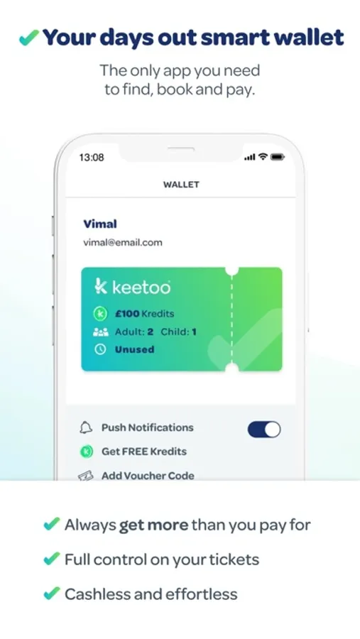 Put your credit cards away! Cashless booking gets your day out sorted in just a few taps.