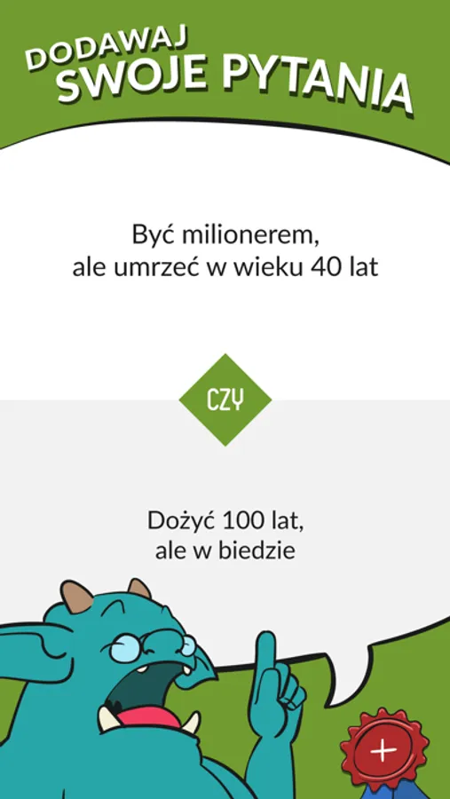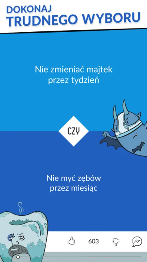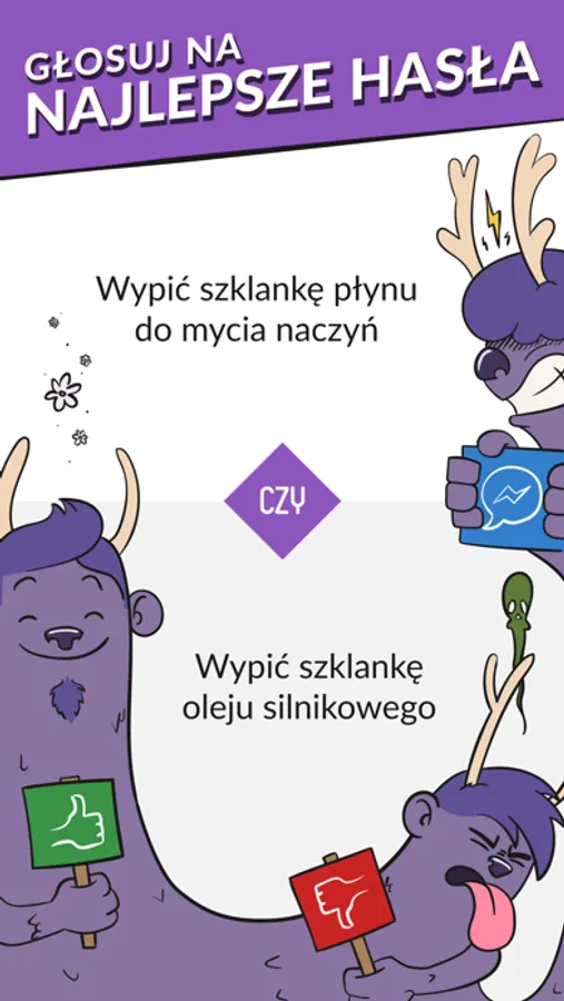 Głosuj na pytania wysyłane przez graczy z całej Polski, dokonuj trudnych wyborów i sprawdź, czy podobnie myślą inni gracze!