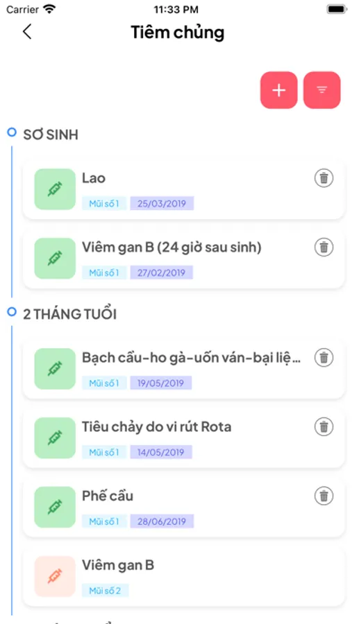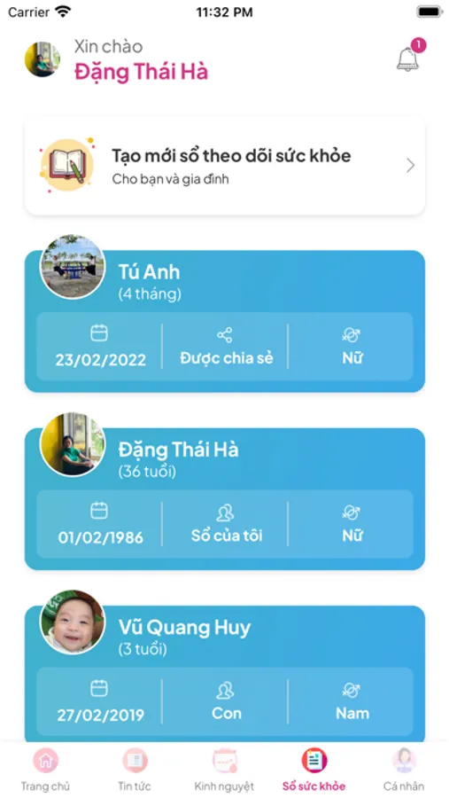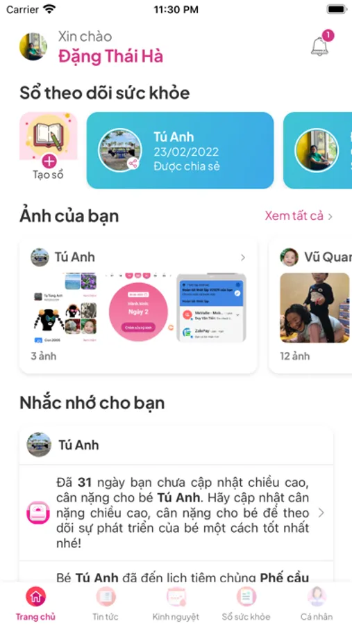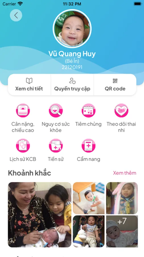 (4) Nhận thông tin thông báo, nhắc nhớ lịch tiêm chủng, khám thai, tái khám...(5) Lịch sử khám chữa bệnh, khám thai, biểu đồ tăng trưởng cân nặng chiều cao.