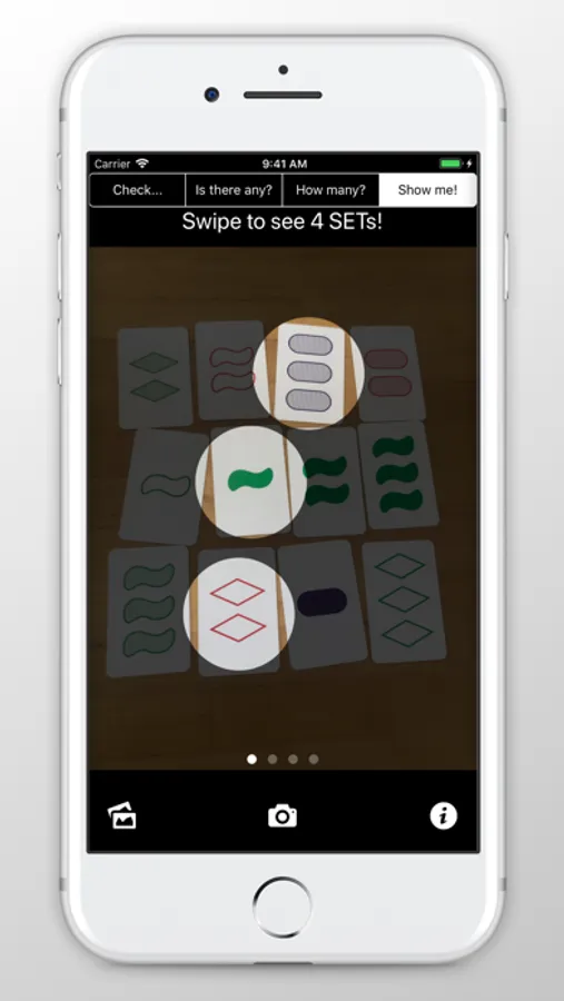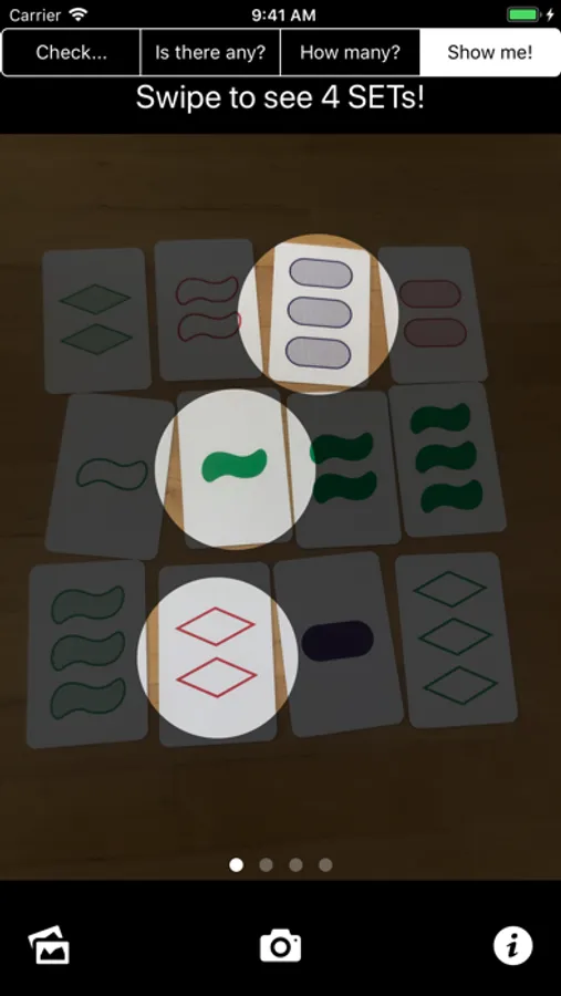 SET® Finder will recognize SET cards on your picture and let you know if there is a SET! Now you finally have a way to check that there really is no SET before you draw additional cards!