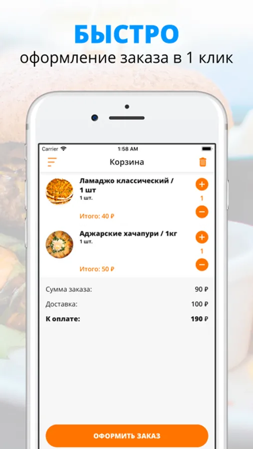 - Отслеживайте статус и время заказа!