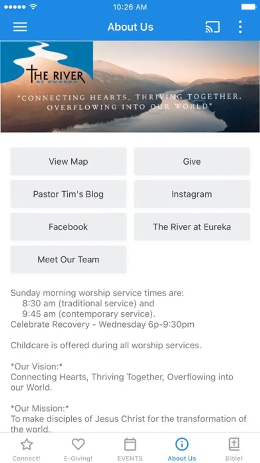 The River At Eureka: ‘Connecting Hearts, Thriving Together, Overflowing Into Our World’.