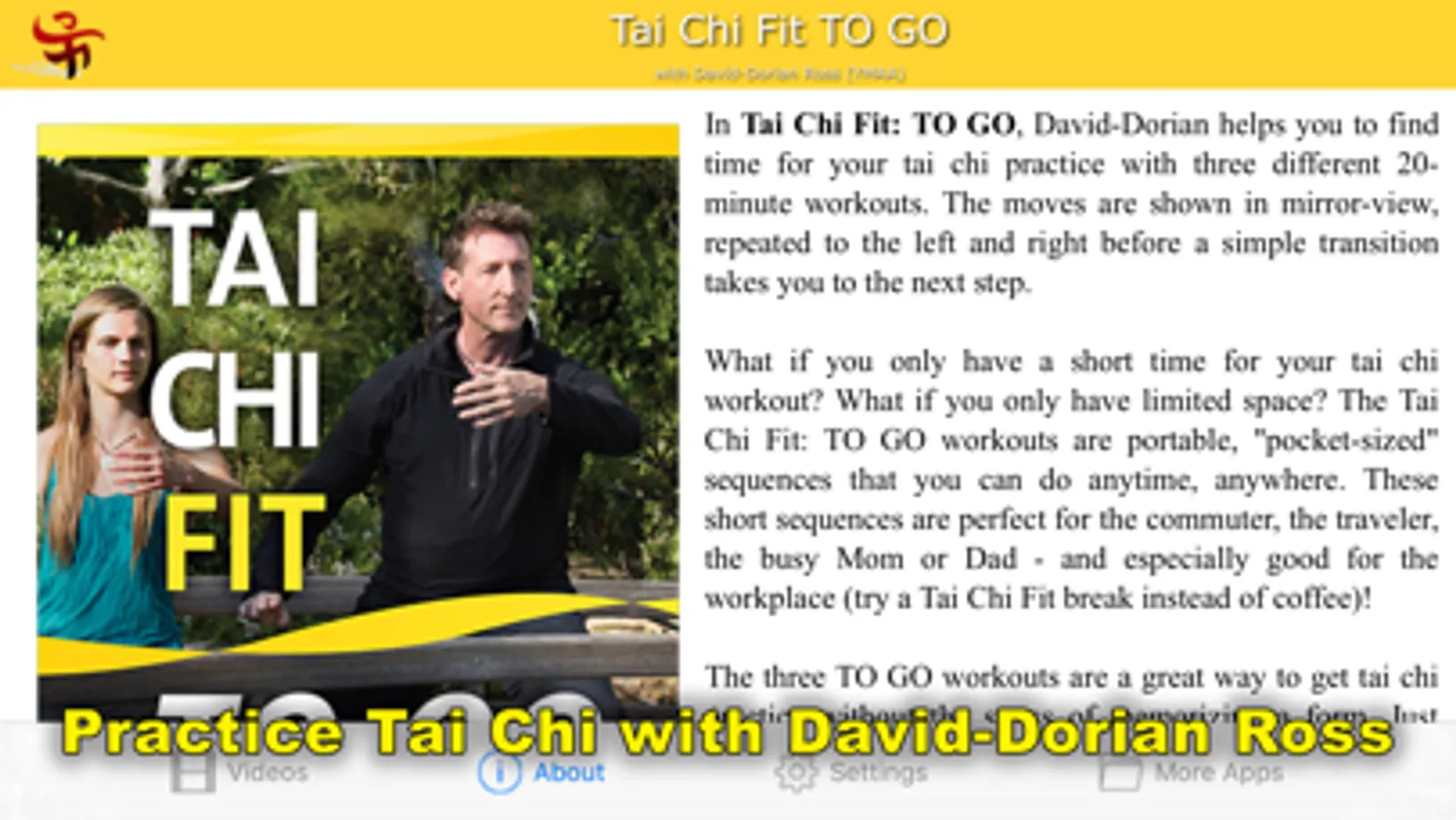 Stream or download these Tai Chi Fit TO GO video lessons and feel the flow of Tai Chi with David-Dorian Ross. Small file size, free sample videos, and a single IAP to unlock all content.