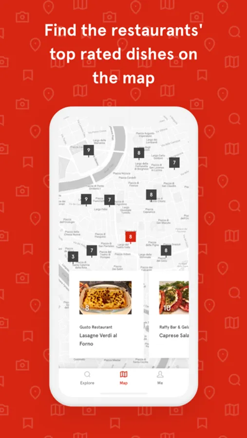 Discover the best local food. Find the restaurants' top rated dishes on the map. Check other foodies' reviews. Ratings, hashtags and photos will navigate you when choosing what to eat.