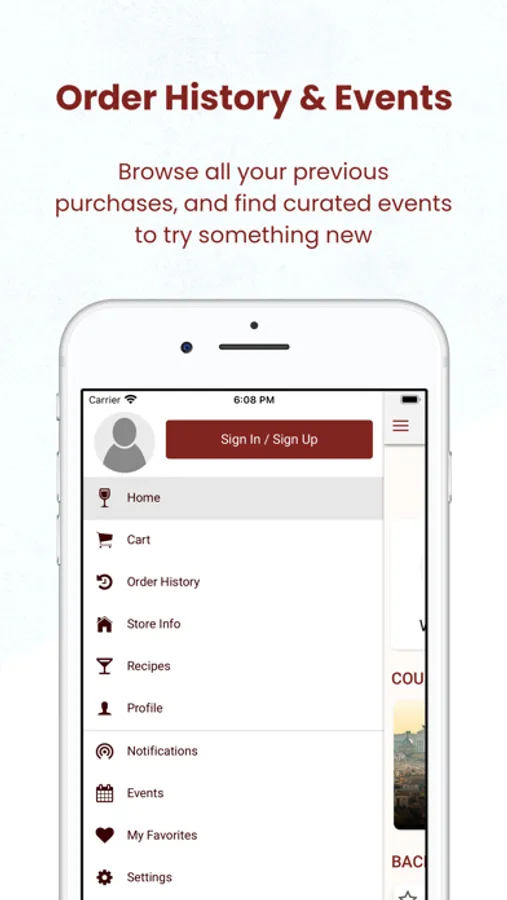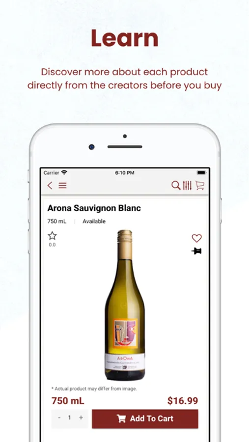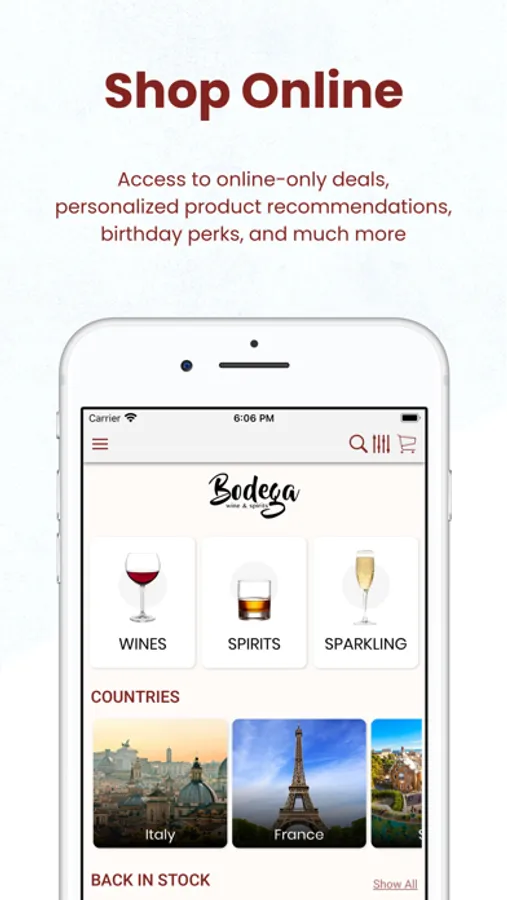 With the App you can browse for the wines & spirits available in the store, and also order a delivery or pickup.