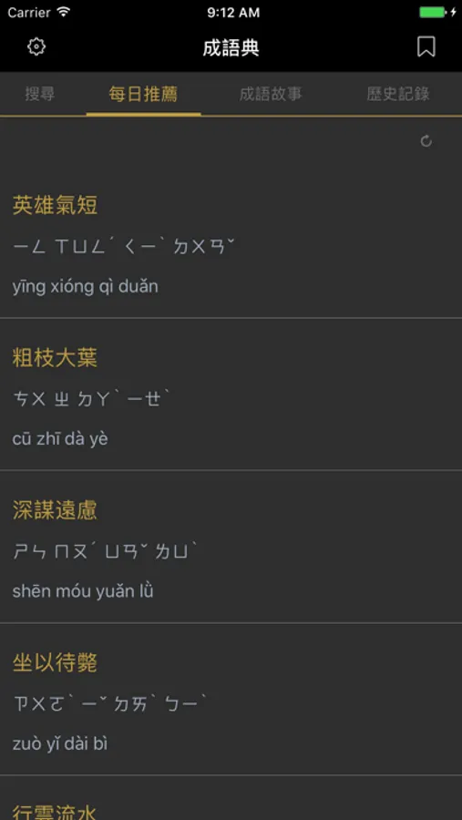 9. 搜尋「yxyy」,會找出拼音首字母為「yxyy」的成語;