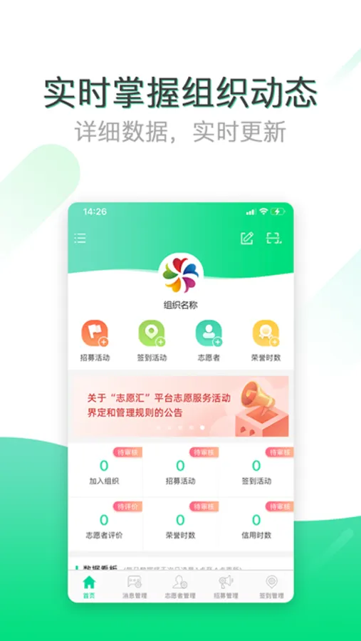 志愿汇组织版,各类公益组织负责人的专业管理应用!