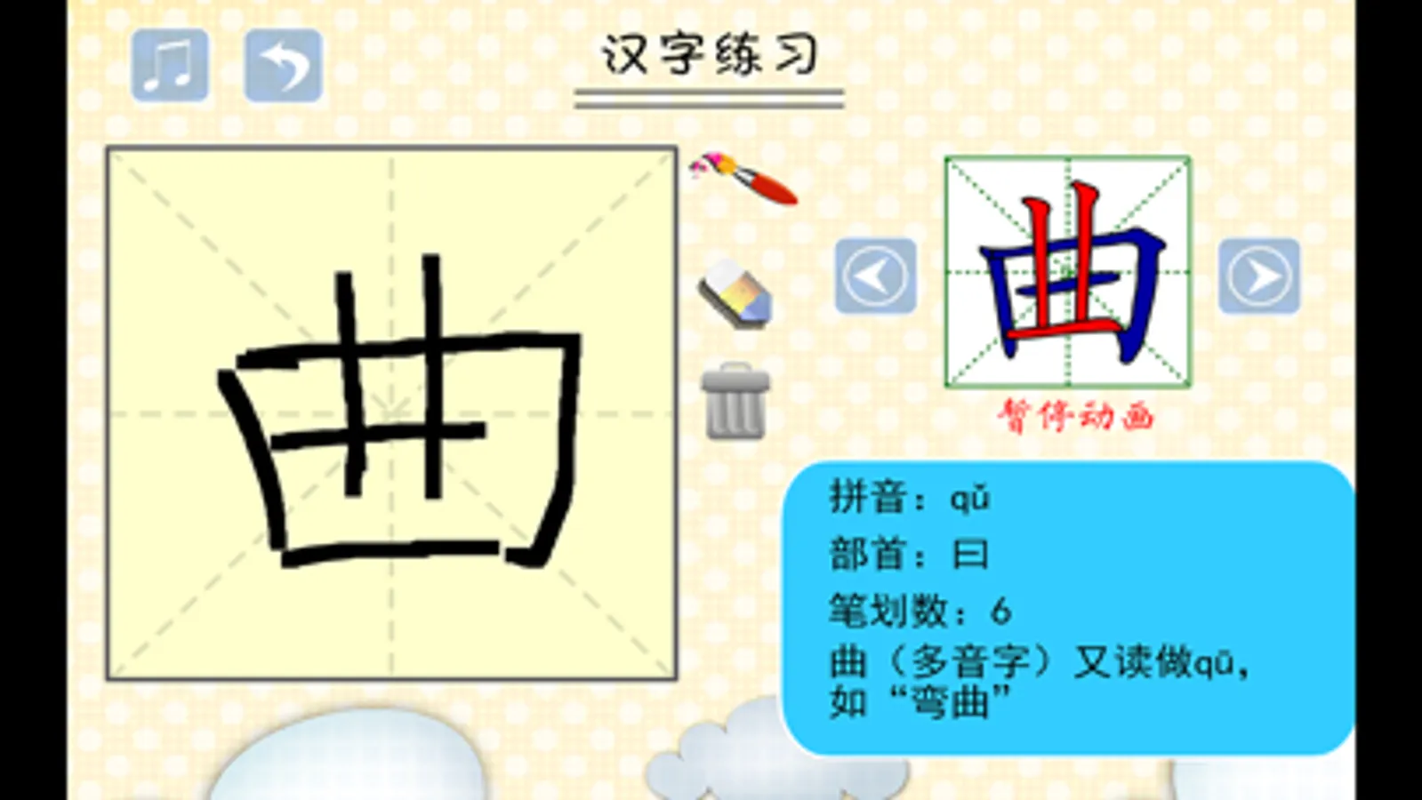 1、笔顺动画,以动画形式演示给孩子看字的书写过程。