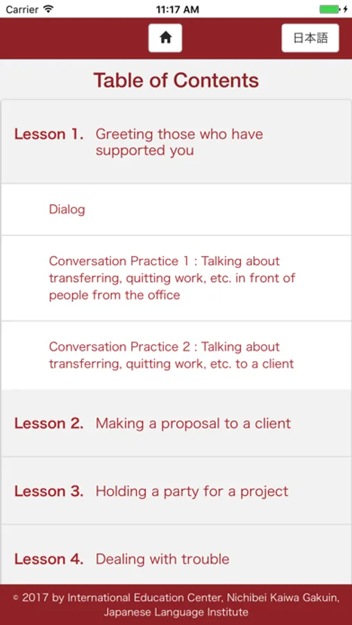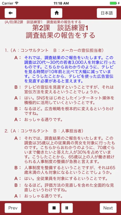 To be most effective, this App should be used in conjunction with the book “Practical Japanese Conversation for Business People – Intermediate 2.” However, it can be used even without the book.