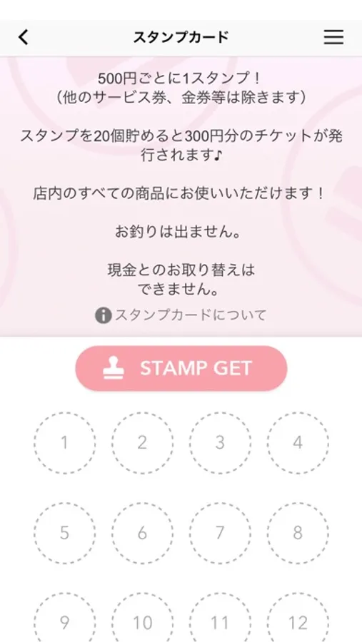 ご利用の際にアプリをご提示ください。アプリ内にスタンプが貯められます。