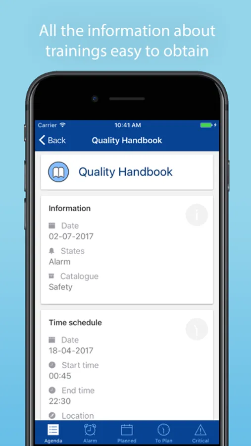 The app is developed is an addition to the Employability Manager. The app’s purpose is to give employees an overview of all training modules, instructions and education that are planned for them. Employees have the opportunity to easily see which trainings still need to be done, which instructions need to be read and which educations courses need to be followed. Moreover it is easy to see if they are late for a module.