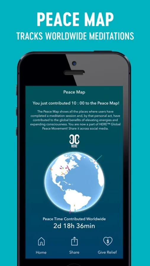 HERE is a global meditation movement for World Peace that starts with you. That’s why your meditation minutes contribute to our World Peace Map. So simple, yet unalterably profound: to achieve world peace, we must each find inner peace. It is HERE, inside each of us, that we connect to a newfound composure that can brighten the world around us.