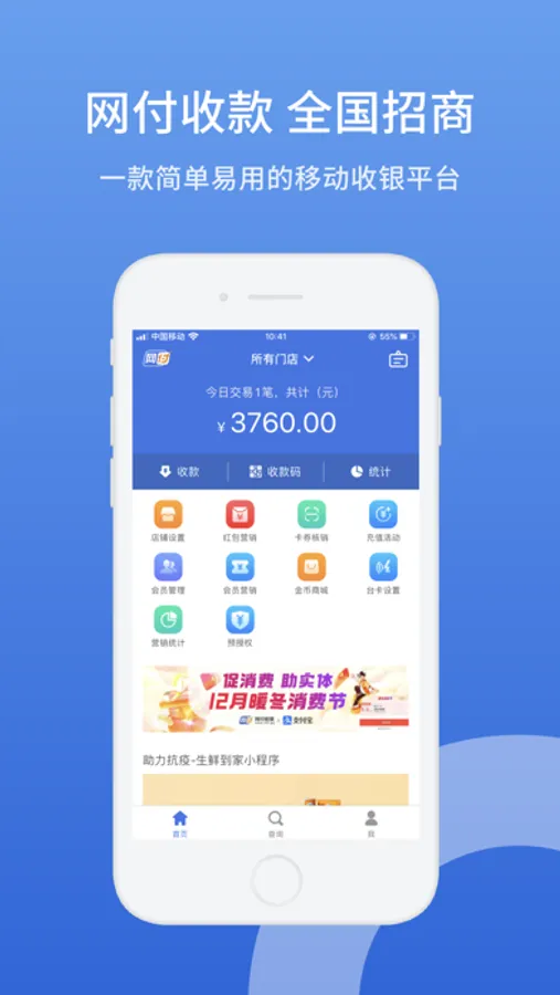 网付是一款专门为传统商家量身打造的收银APP,网付支持移动端APP收款, 手机在哪就可以在哪收款,同时支持PC收款,POS机收款,二维码收款。