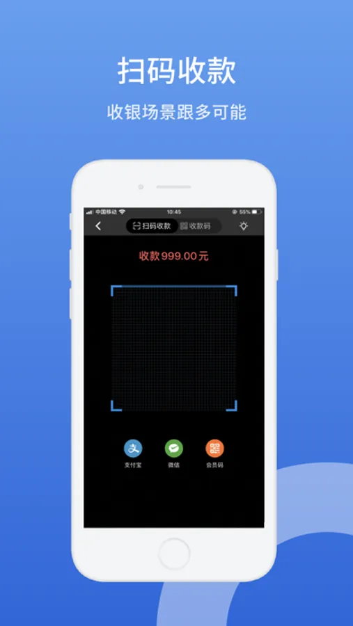 微信与支付宝支持扫码收款、支持被扫收款、收款码收款、硬件设备收款等等。所有收款方式收款成功后均有语音播报提醒。