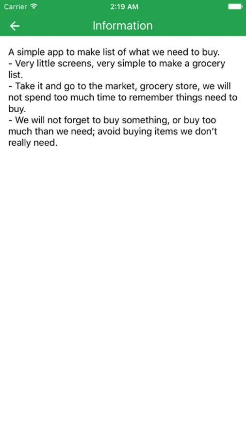 We will not forget to buy something, or buy too much than we need. Need to Buy - Grocery List will make our grocery shopping quick and efficient.