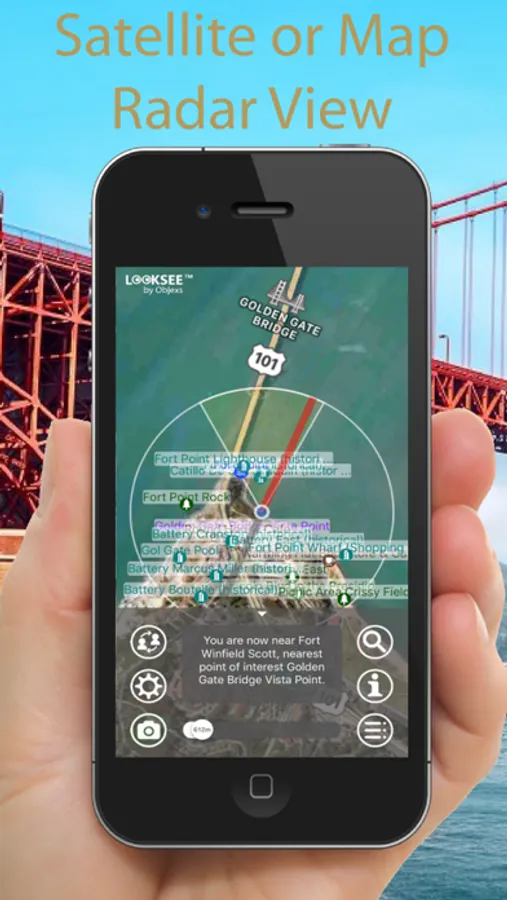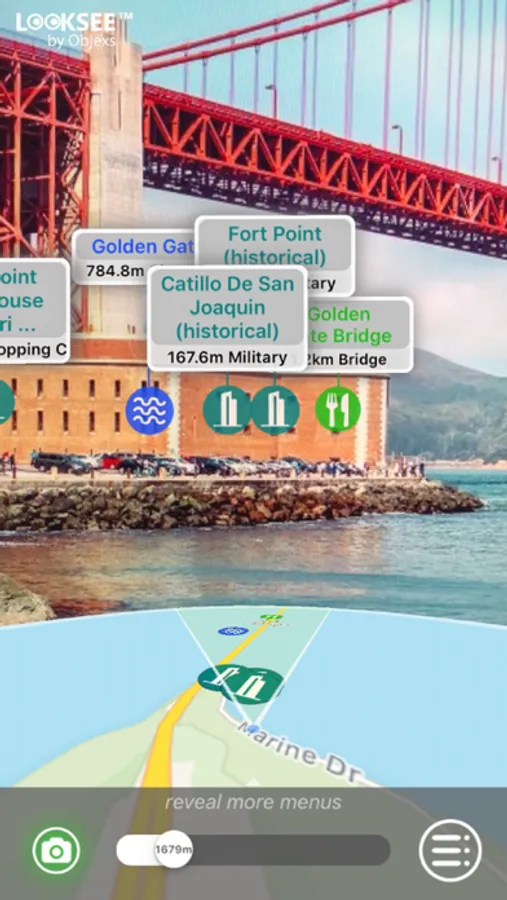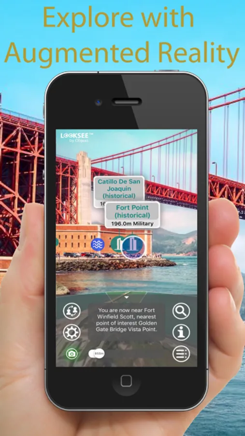 Looksee AR for San Francisco and the Bay Area, California, USA, is an Augmented Reality (AR) viewer used to find places of interest from close up to 10km away directly within your phone's camera view and add fun, knowledge and interest to your adventures and tours.