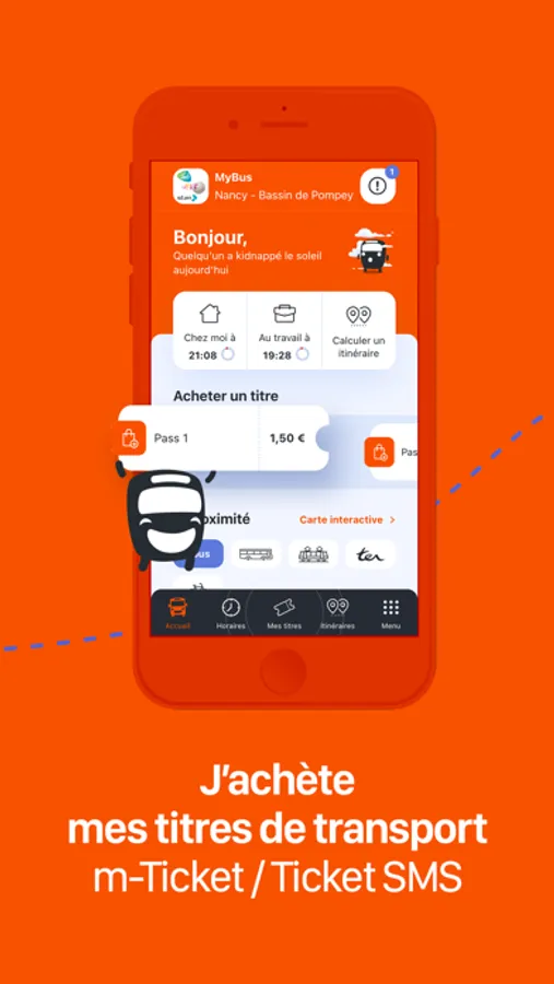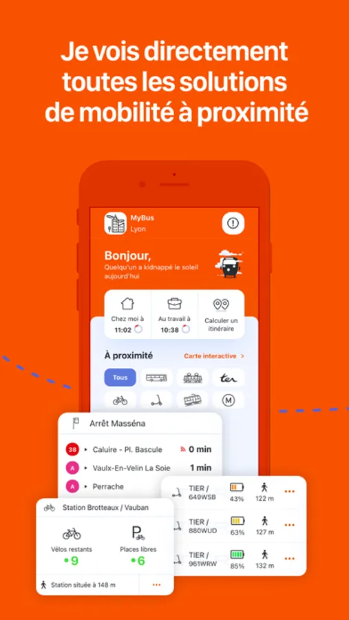 Avec MyBus, tu as tous les horaires des transports en commun et autres mobilités de ta ville dans ton smartphone :