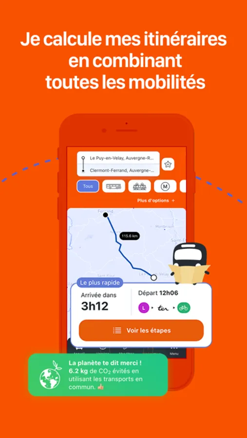 > Laisse l'application calculer les différents itinéraires possibles jusqu'à ta destination, à la date et l'heure de ton choix.