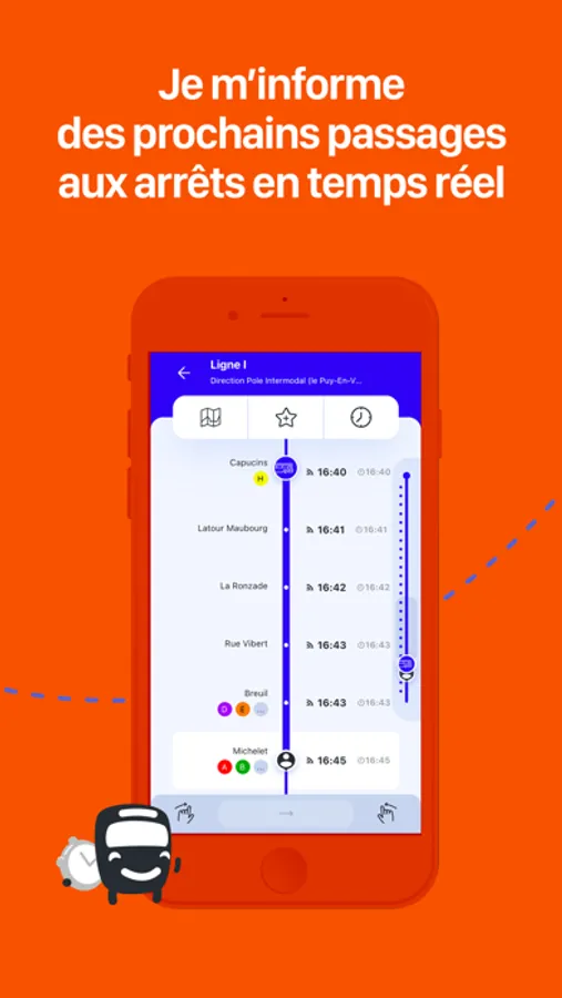 > Suis en temps réel la position des bus, trams, métros ou navettes sur la carte du réseau et à l'approche de ton arrêt.
