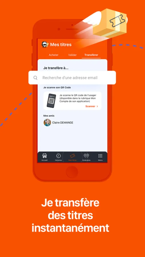 > Tu peux même transférer à distance et en temps réel des titres de transport à un autre utilisateur MyBus.