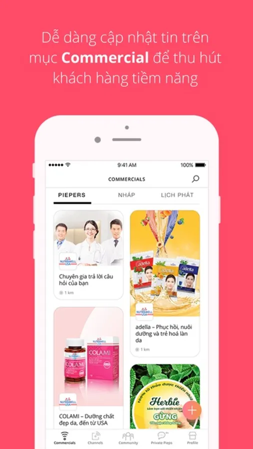 PiepMe tạo điều kiện cho mọi doanh nghiệp chia sẻ dịch vụ và sản phẩm của mình đến cộng đồng người tiêu dùng mà không cần sở hữu bất kỳ thông tin nào của khách hàng. Với PiepMe, doanh nghiệp có thể mở rộng mạng lưới tiếp cận khách hàng như chưa từng có, tăng doanh số và hiệu quả kinh doanh là chuyện dễ trong tầm tay.