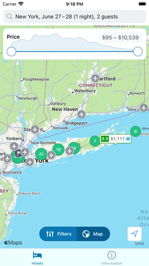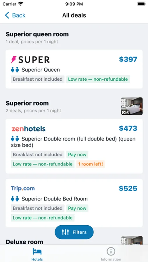 5. In the search results, use filters by price, hotel rating, distance from the city center, type of food, and others.