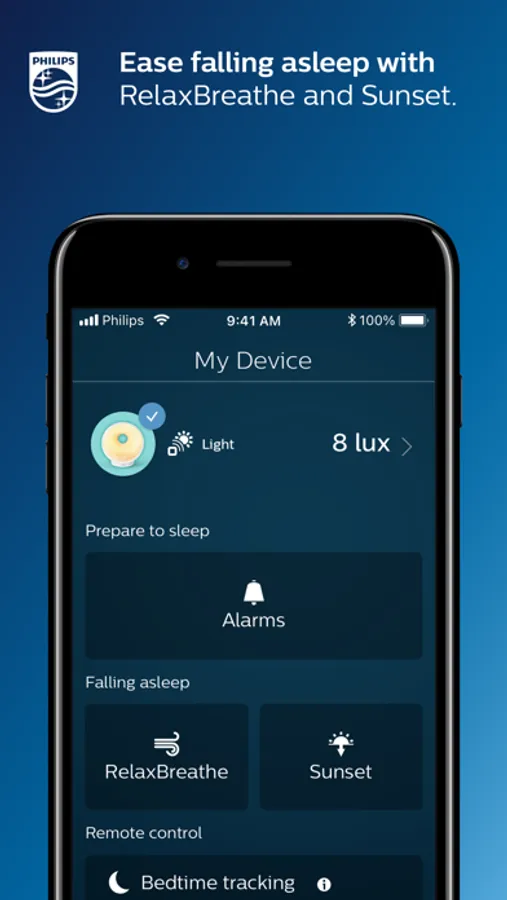 With SmartSleep Sleep & Wake-Up Light: Fall asleep relaxed, wake up refreshed and learn about your bedroom environment. Monitor amongst other the light and sound levels so you can adjust to improve your sleep.