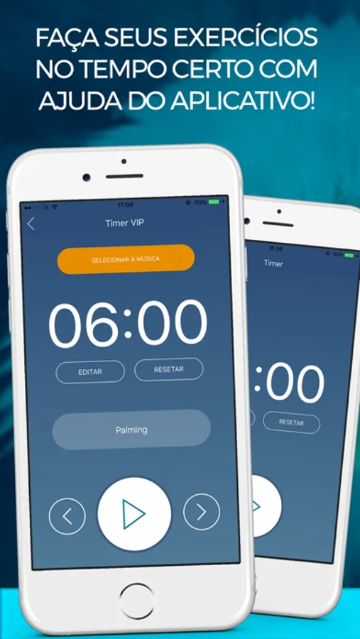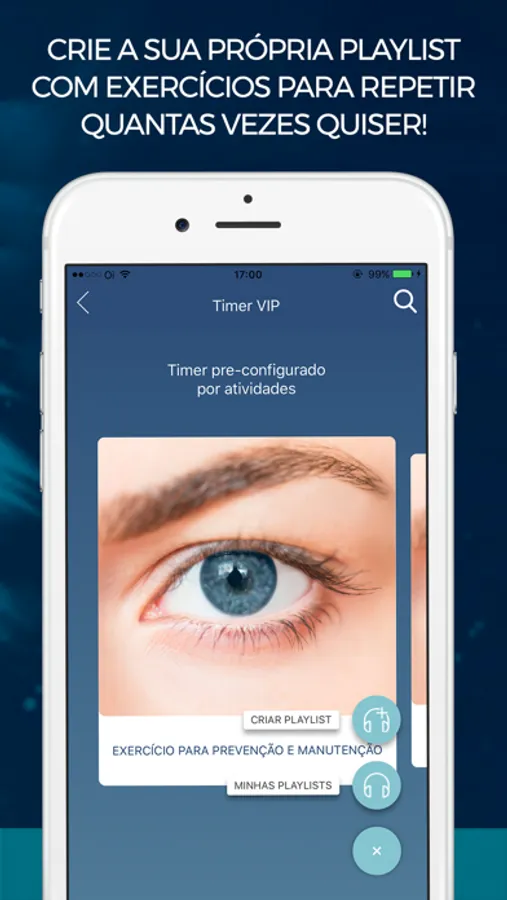 Experimente a função de timer com cronômetro para lhe ajudar a monitorar o tempo dos exercicios visuais.