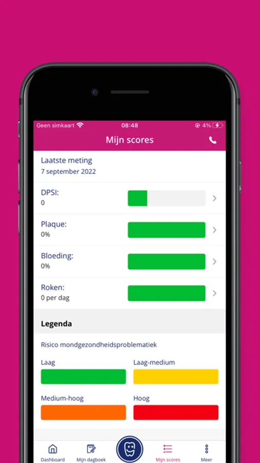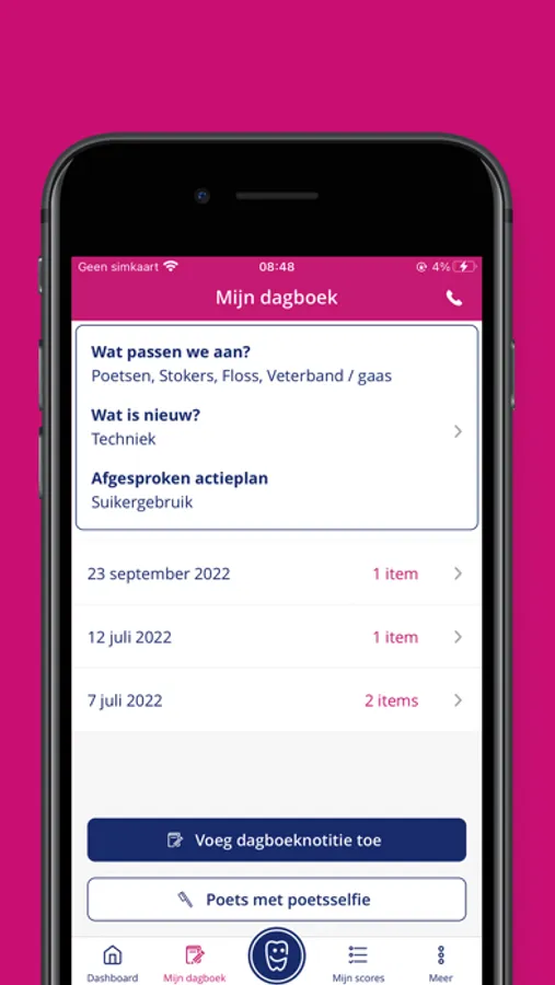 Dental Coach; personal professional support in dental prevention. The personalised app provides individual assistance to patients and support in following advice. In the app, dental care providers can create a unique dental and risk profile for each patient, including customised maintenance advice.