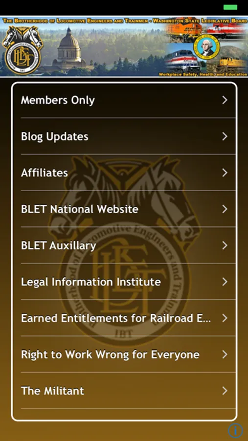 The official mobile app for the Brotherhood of Locomotive Engineers and Trainmen - Washington State Legislative Board. Features include: