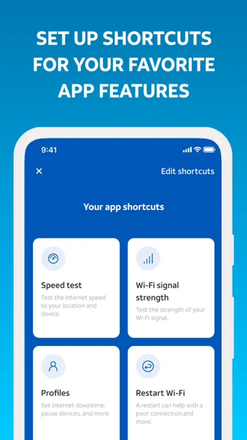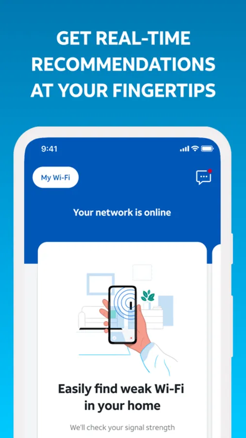 • Check your network health, get notified of issues and service outages, run speed tests, and more