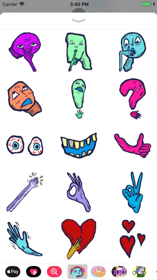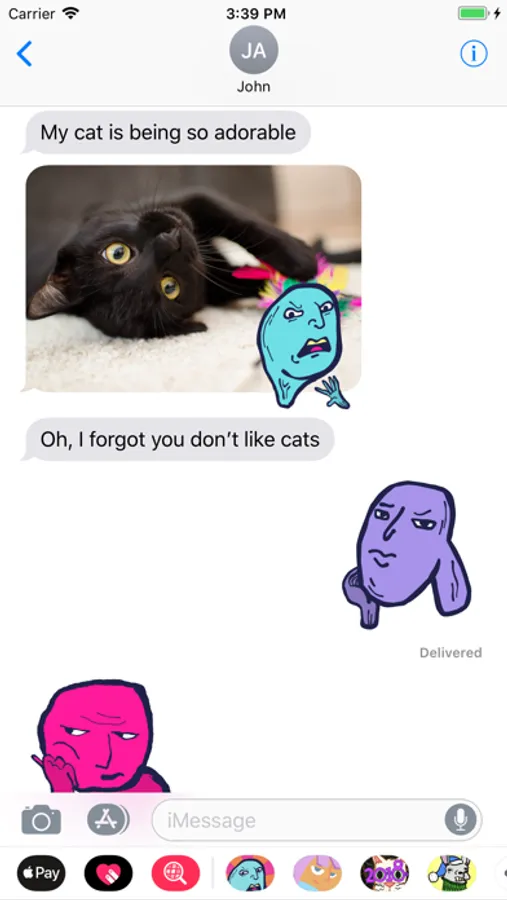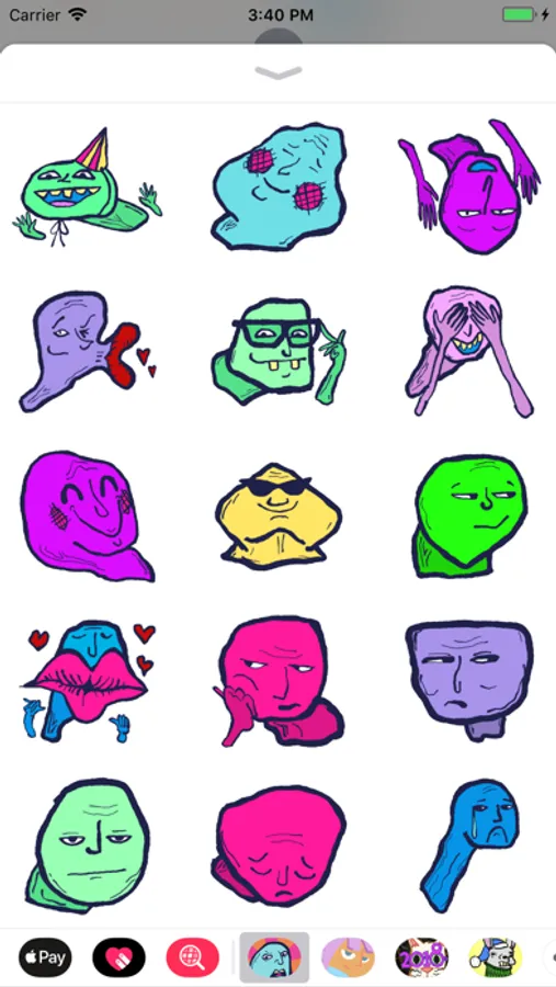 This pack contains over 80 stickers including many reactions based on popular emojis along with several other unique looks. There are also some hearts in there so that you can use them in your apology message after you unleash these odd stickers onto your friends and family.