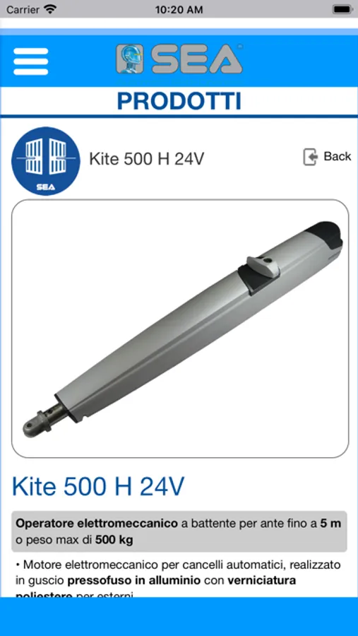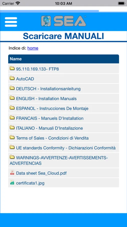 L'app permette la consultazione di schede tecniche, listini prezzi, cataloghi, prodotti, video e FAQ.