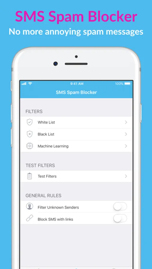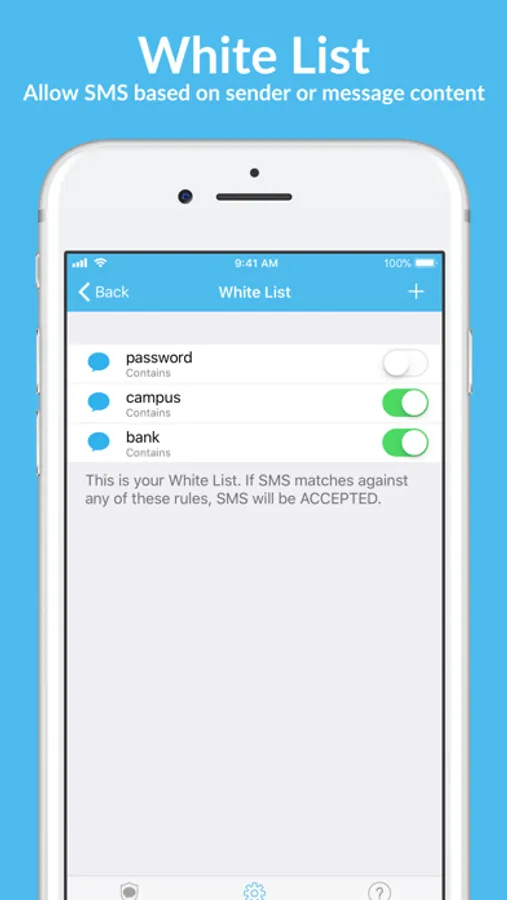 Besides white and black list, this application also has an Artificial Intelligence(AI). If you activate it, you can filter SMS messages even though they don't appear in your rules. Please be aware that AI is trained on small amount of messages therefore it is impossible to identify every message correctly
