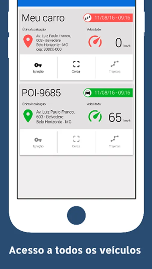 Você poderá ver aonde estão todos os seu veículos no mapa, e poderá consulta o trajeto diário, e visualizar todos os locais que seu veículo esteve no dia.