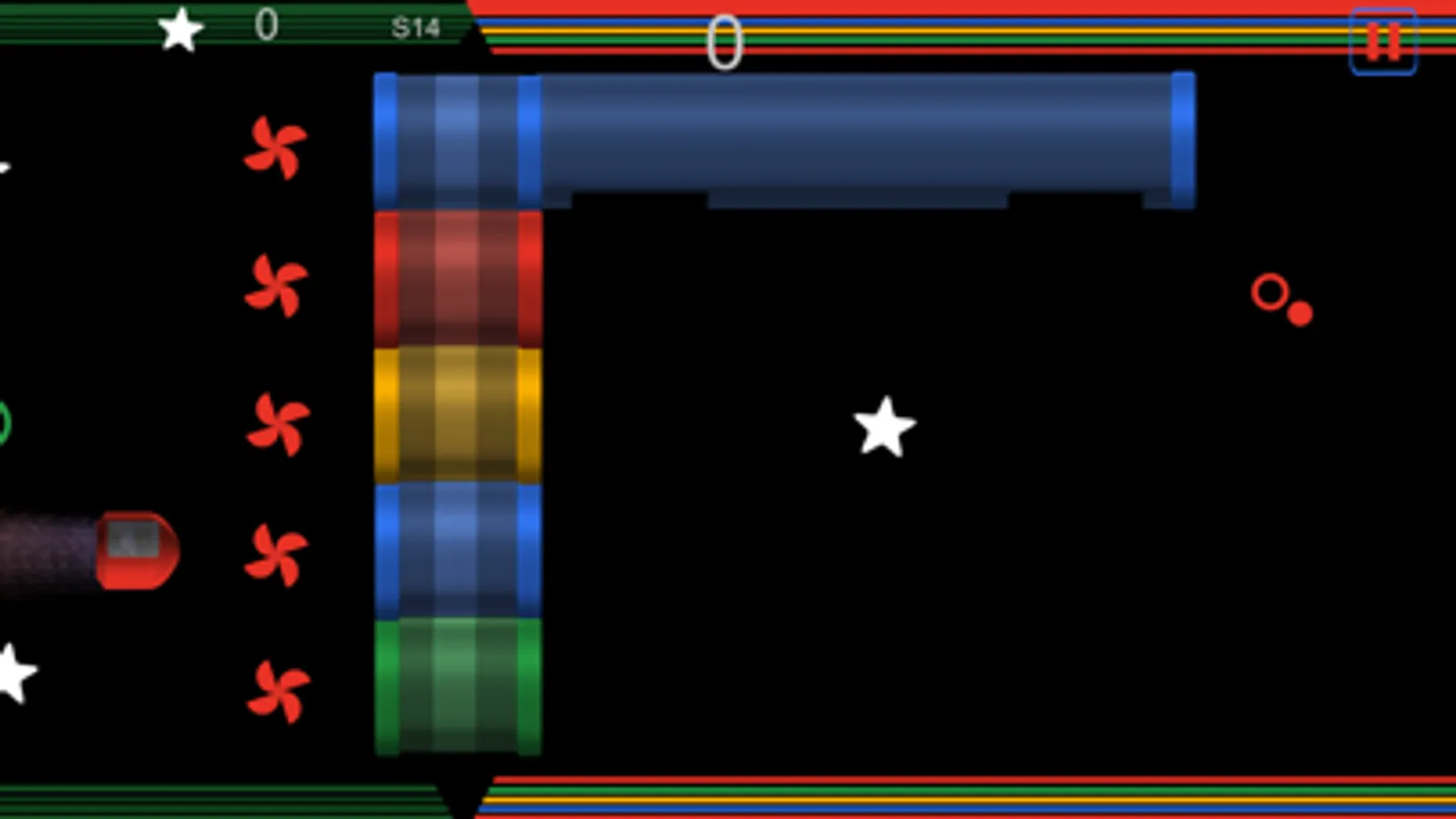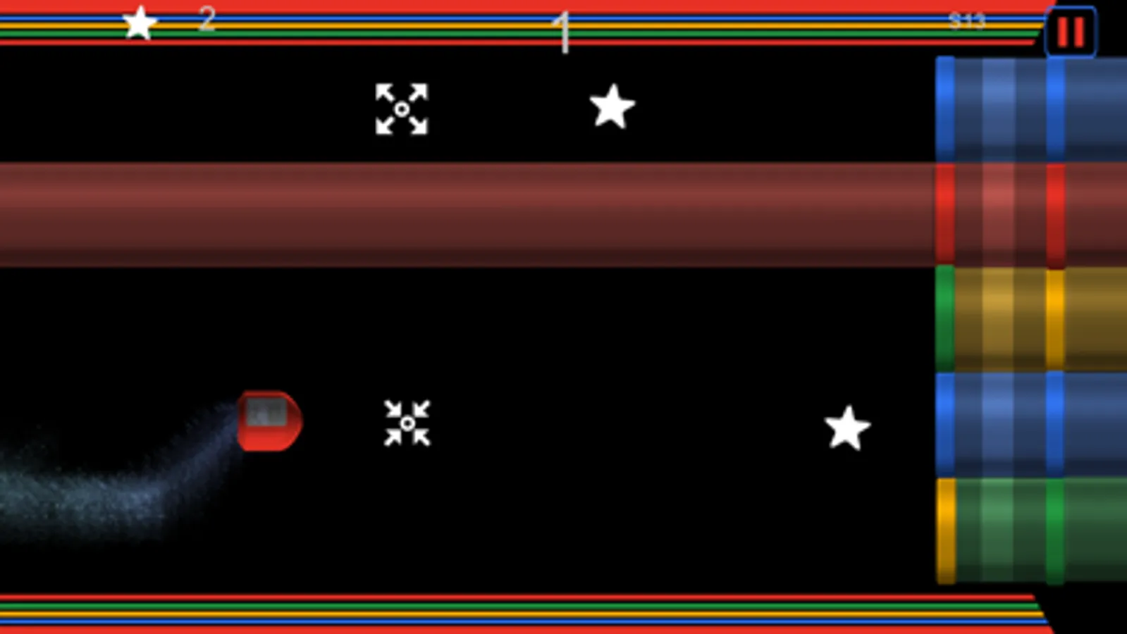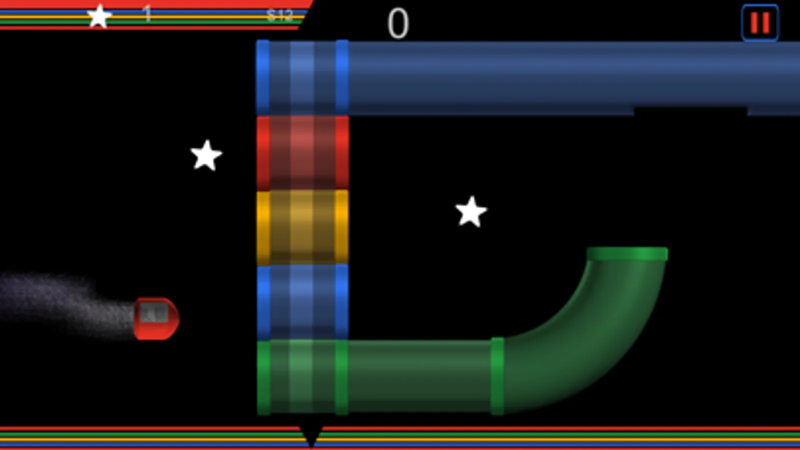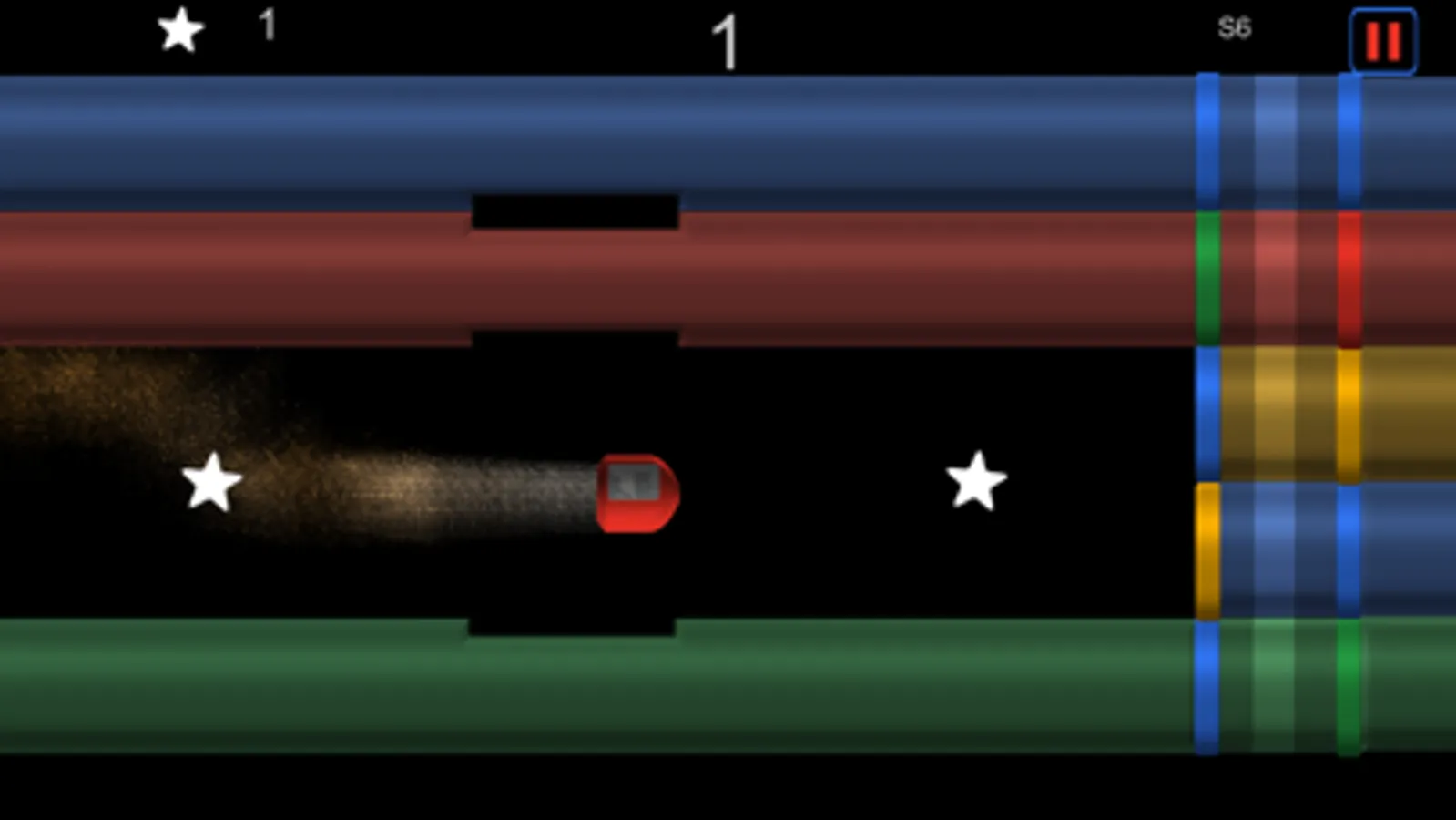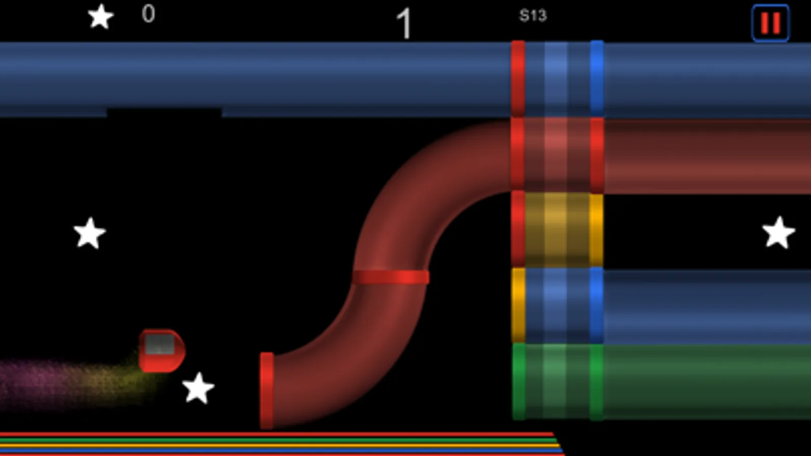 Be careful not to pass through the tube wrong color. Drive your spaceship through the appropriate switch color tube. If you're wrong, you’ll have to start the level again.