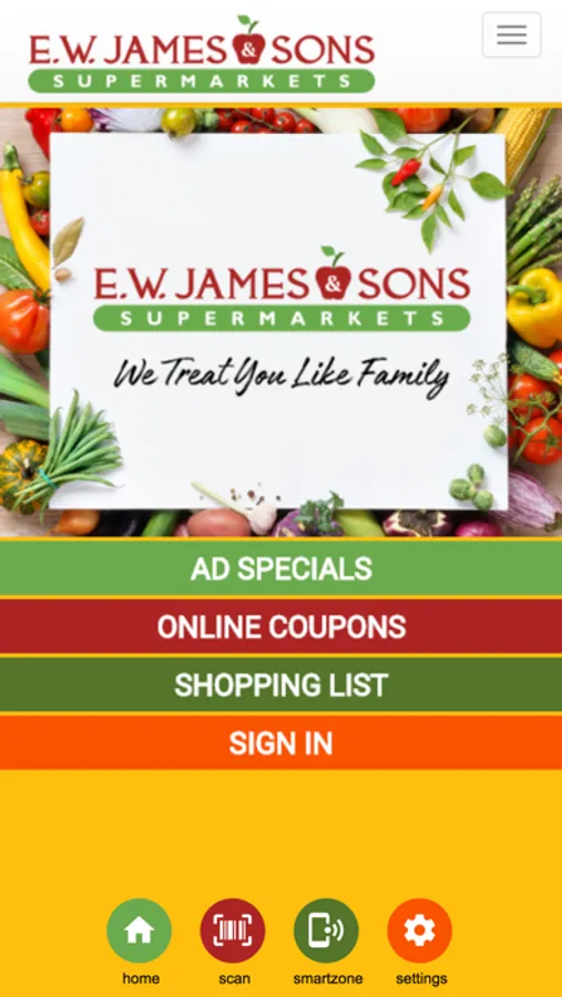 The EW James & Sons app enhances your grocery shopping experience. As you shop at a participating store, use this shopping companion app to help save you more money. Along with being able to view store ads and coupons, the SmartZone feature allows the grocer to send deals and announcements to your phone.