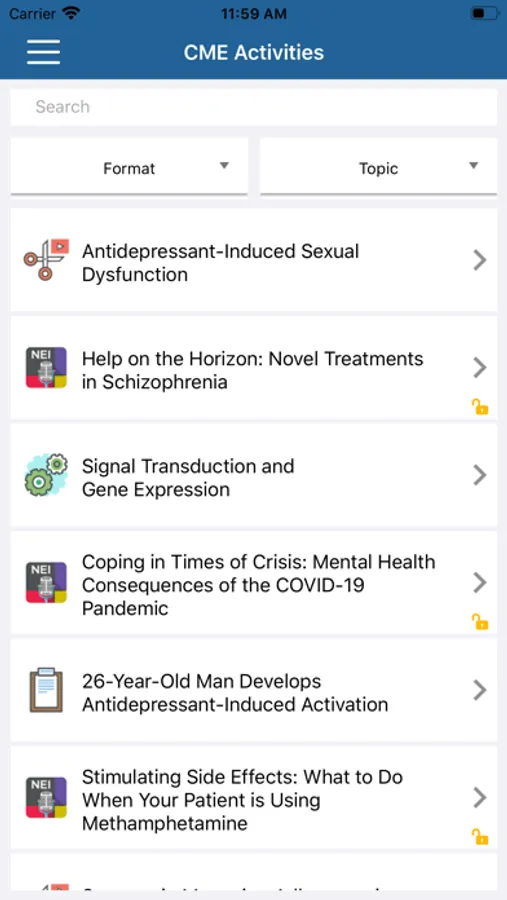 Our most popular online CME activities, now available in our newest app! Access animations, encore presentations, clinical cases, self-assessments, treatment guidelines and articles. Enhance your mental health care knowledge with cutting-edge education at your own pace, and conveniently meet all your CME requirements from your smartphone.